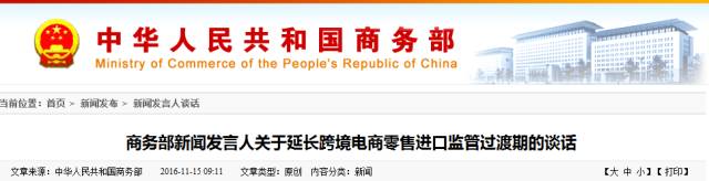 過渡期實(shí)施以來,跨境電商零售進(jìn)口平穩(wěn)發(fā)展,對(duì)于引導(dǎo)企業(yè)積極適應(yīng)規(guī)范的監(jiān)管要求、地方不斷創(chuàng)新監(jiān)管服務(wù)等發(fā)揮了重要作用。同時(shí),相關(guān)部門也在從有利于促進(jìn)行業(yè)健康發(fā)展、有利于維護(hù)消費(fèi)者利益和安全健康的角度研究優(yōu)化監(jiān)管安排。為穩(wěn)妥推進(jìn)跨境電商零售進(jìn)口監(jiān)管模式過渡,經(jīng)商有關(guān)部門同意,上述過渡期進(jìn)一步延長至2017年底。