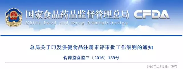 CFDA發(fā)布《保健食品注冊審評審批工作細則》(2016年版)