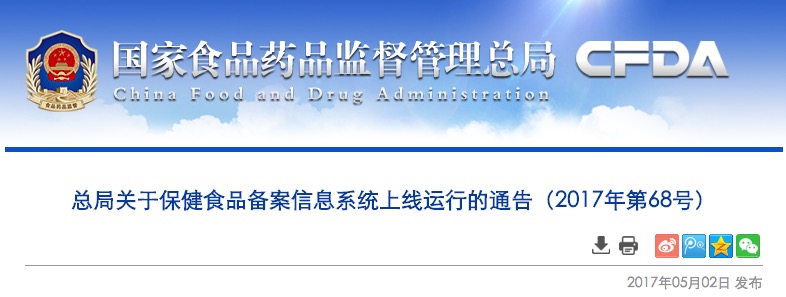 2017年5月2日,CFDA正式印發(fā)《保健食品備案工作指南(試行)》的通知,同時發(fā)布《保健食品備案信息系統(tǒng)上線運行的通告》及《保健食品備案產(chǎn)品可用輔料及其使用規(guī)定(試行)》《保健食品備案產(chǎn)品主要生產(chǎn)工藝(試行)》從而全面啟動保健食品備案。