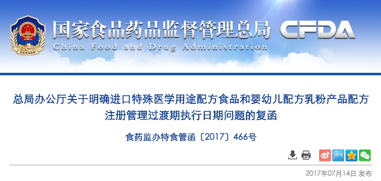 CFDA明確進(jìn)口特醫(yī)食品和嬰配乳粉產(chǎn)品配方注冊管理過渡期公告