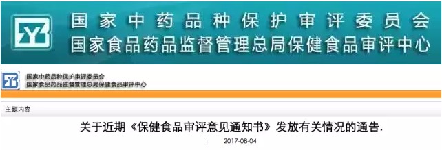 中保辦關(guān)于近期《保健食品審評意見通知書》發(fā)放情況通知