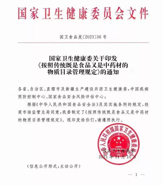 按照傳統(tǒng)既是食品又是中藥材的物質(zhì)目錄管理規(guī)定