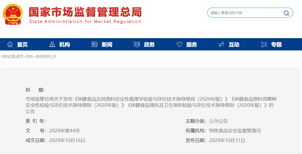 附件:《保健食品及其原料安全性毒理學(xué)檢驗與評價技術(shù)指導(dǎo)原則(2020年版)》《保健食品原料用菌種安全性檢驗與評價技術(shù)指導(dǎo)原則(2020年版)》《保健食品理化及衛(wèi)生指標(biāo)檢驗與評價技術(shù)指導(dǎo)原則(2020年版)》